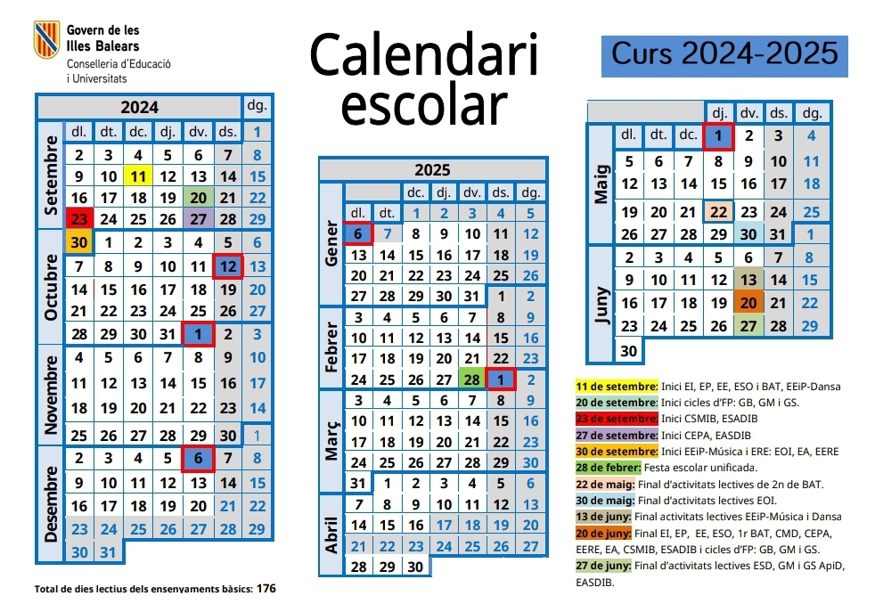 Adjuntam la proposta de calendari escolar per als centres docents no universitaris de les Illes Balears per al curs 2024-2025 que va presentar la Conselleria d’Educació i Universitats.