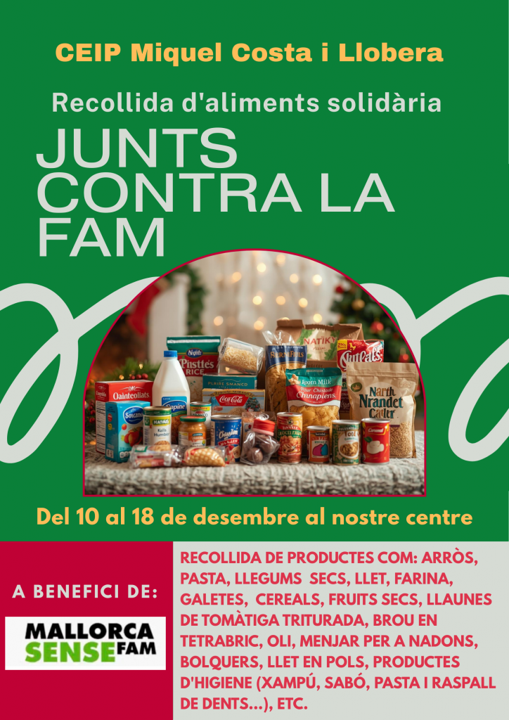 Els grups de 6è de Primària del nostre centre han tengut la idea de col·laborar amb l’ONG Mallorca Sense Fam amb la donació d’aliments i productes d’higiene.